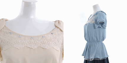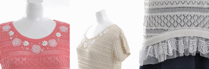 透かし編みとレースによる程よい透け感を有する素材同士の