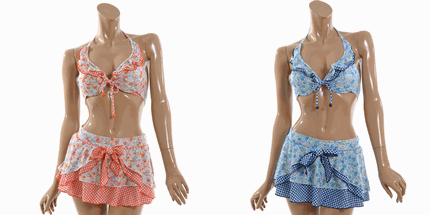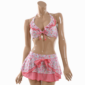 小花プリント×チェック柄フリルリボン水着をお得な価格でご提供!!