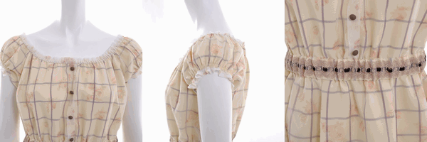 サイズ:【着丈81.5cm バスト98.6cm ウエスト(ゴム)65cm 袖丈12.5cm】